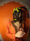 Signature silhouette Lace “horn” rises ~20 cm above the brow and swings slightly with movement.